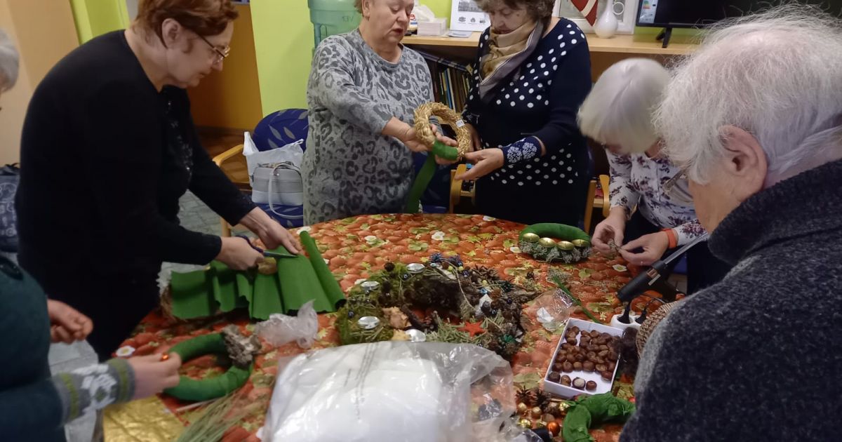 Pirms Ziemassvētkiem Dienas centrā “Kopā būt” notika daudz dažādu radošo darbnīcu. Ikkatrs apmeklētājs varēja sev radīt: Adventes vainagus, Ziemassvētku dekorus un zābaciņus, eņģelīšus un rūķus. Šoreiz radošajās darbnīcās paši seniori bija skolotāji un mācekļi! Paldies skolotājiem: Maijai, Ausmai, Ievai, Vēsmai!