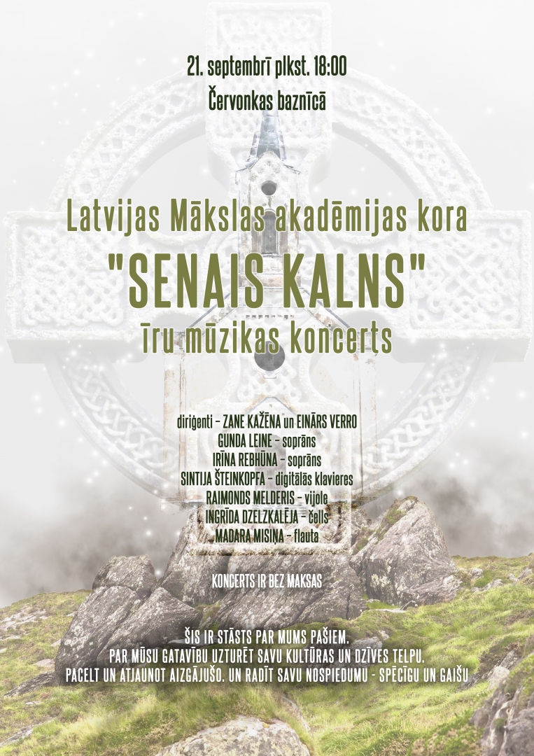 Biedrība „Ūdenszīmes” aicina apmeklēt īru mūzikas koncertu Červonkas baznīcā. Koncerts notiks sestdien,