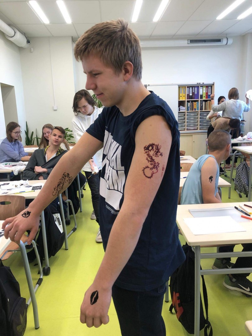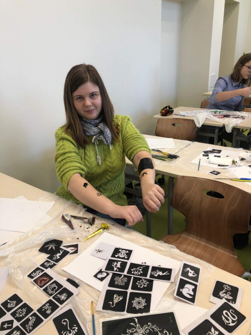 Savukārt mākslas nodarbībās jaunieši apguva praktiskas lietas par mākslu un tās nozīmi sabiedrībā plašākā nozīmē. Projekta uzsākšanas laikā tika noskaidrots, ka skolēniem ļoti saistoši šķita tetovēšanās māksla, tāpēc mākslas nodarbībās tika sniegta iespēja iepazīties ar dažādu zīmju nozīmi, veidot savas individuālās skices – iztēlei robežas neliekot. Un, protams, jauniešiem tika dota iespēja realizēt savu sapni- tika veikti hennas zīmējumi.
