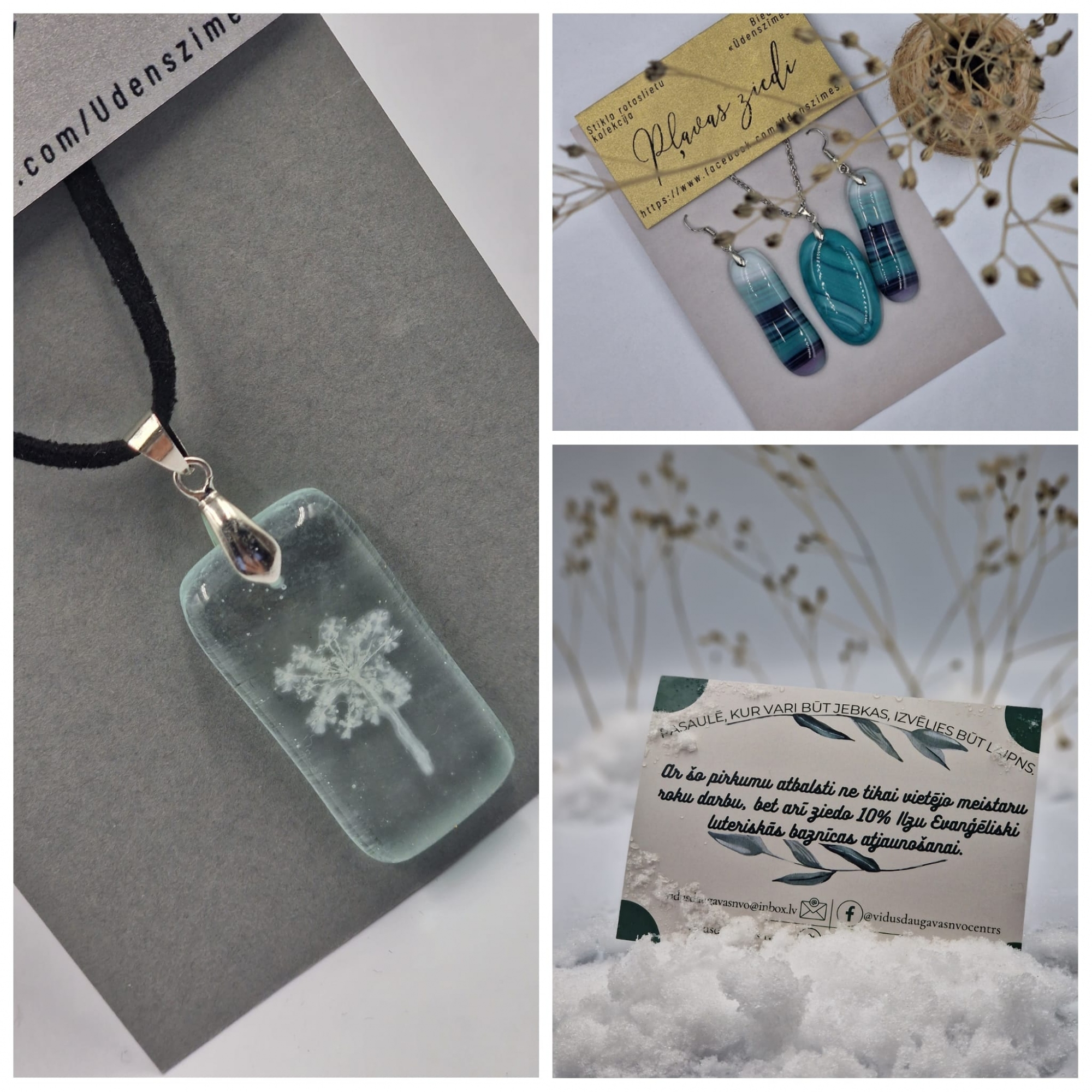 Skaistas dāvanas sanāks no biedrībā "Ūdenszīmes" darinātajām stikla rotaslietām ar neparastu un spēcīgu enerģiju. Savukārt sirsnīgu novēlējumu svētkos varēs ierakstīt Sofijas, sešpadsmitgadīgas kara bēgles no Ukrainas, darinātās svētku kartītēs.