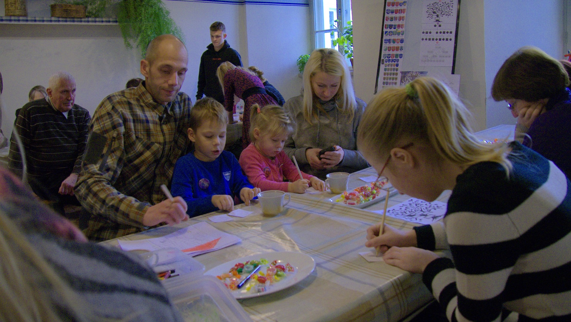 Mākslas skolas pasniedzējas Inas Geleckas vadītā radošā darbnīca dzimtas ģerboņa izveidošanā sniedza iespēju vēlreiz aizdomāties par savai dzimtai raksturīgo. Ģerboņu idejas interesenti nobeigumā izveidoja nozīmītes formā. Kas vēlējās, kopā ar ģimeni varēja nofotografēties “Šodienas vēsturiskajā rāmī” un fotogrāfiju saņemt savos e-pastos.