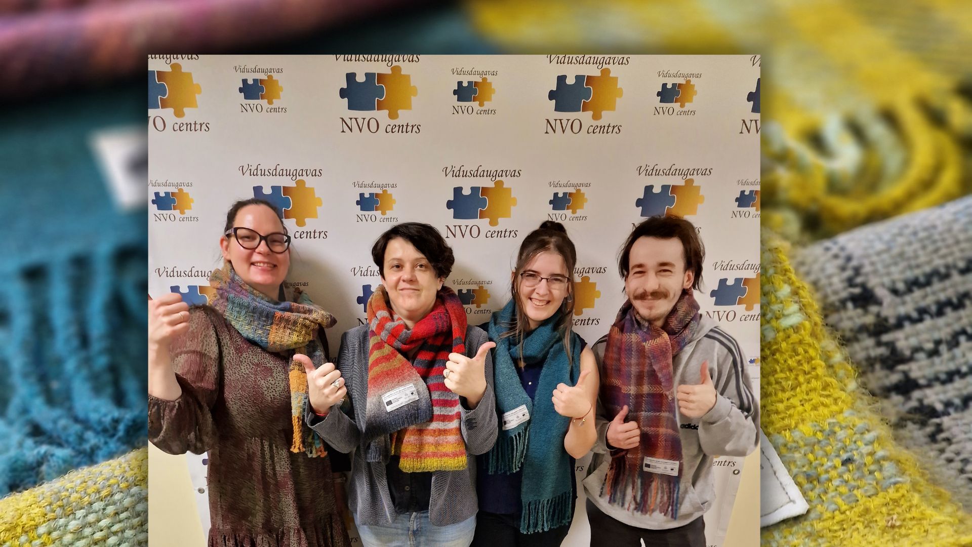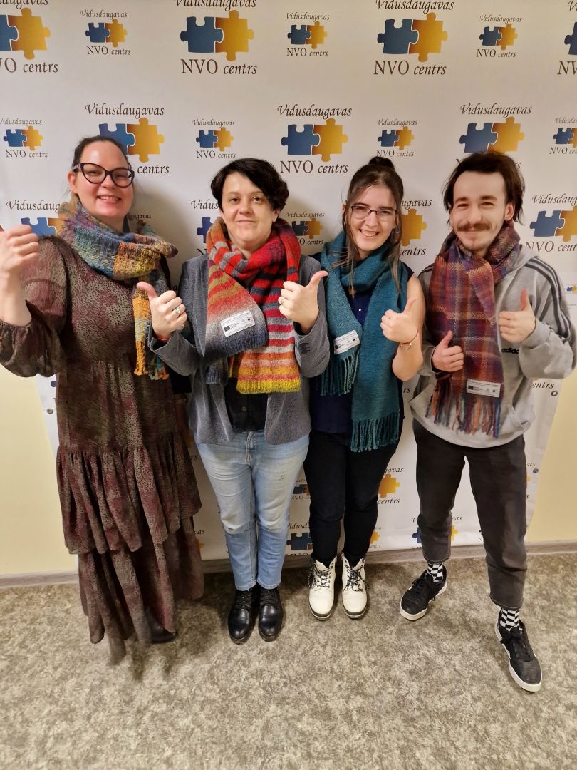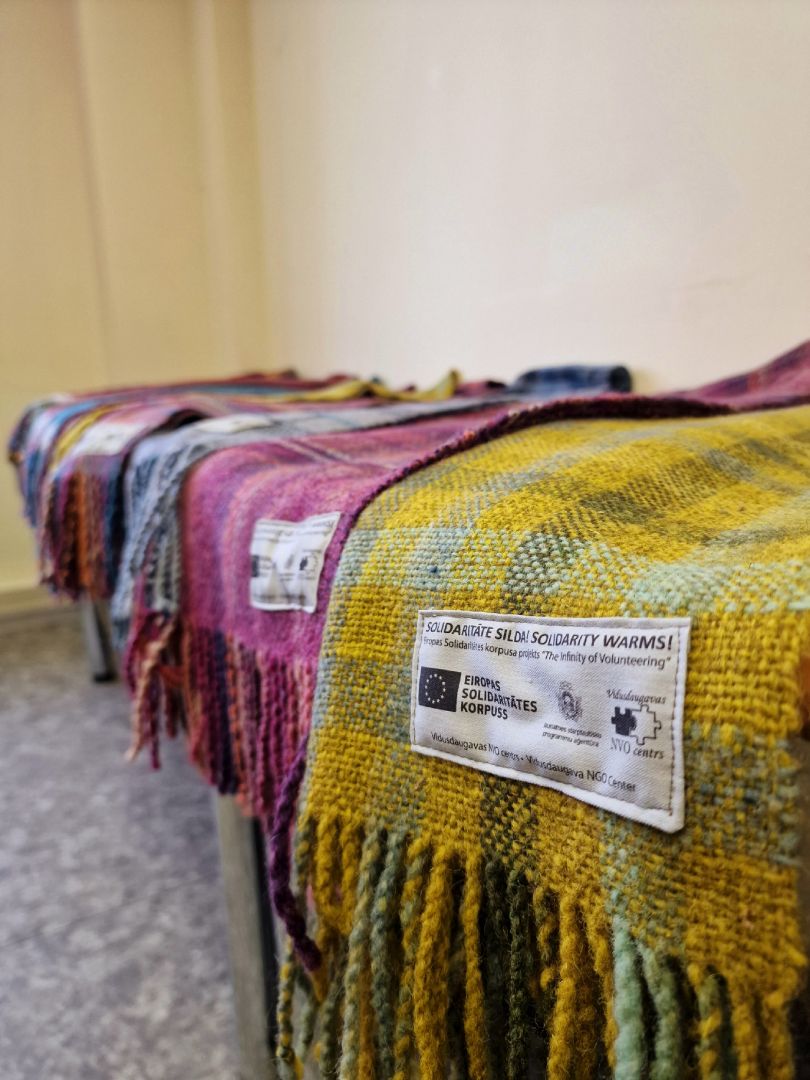 Jaunieši un ikviens iesaistītais projektā saņēma siltas dāvanas - vilnas šalles ar zīmīgu vēstījumu "Solidaritāte silda".