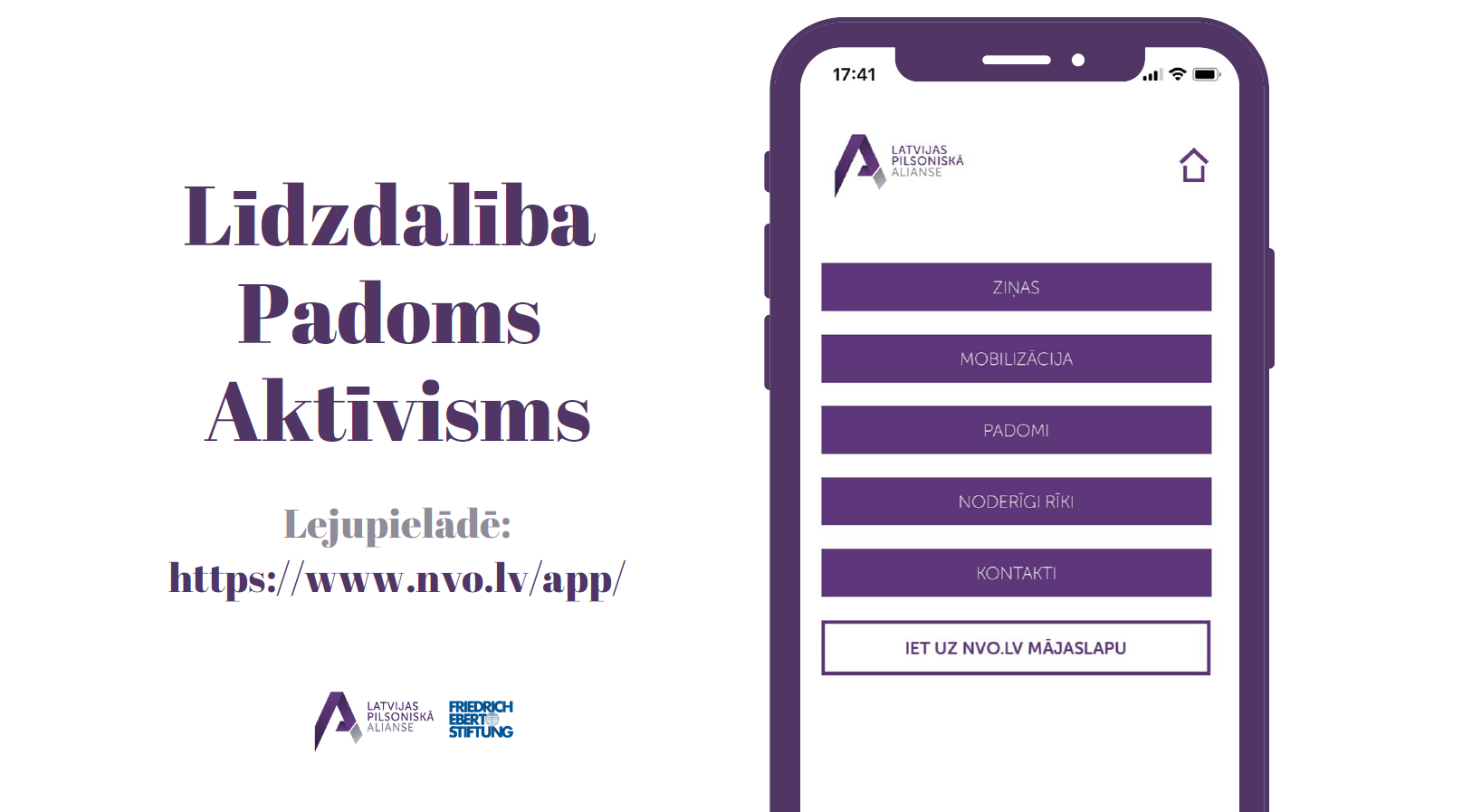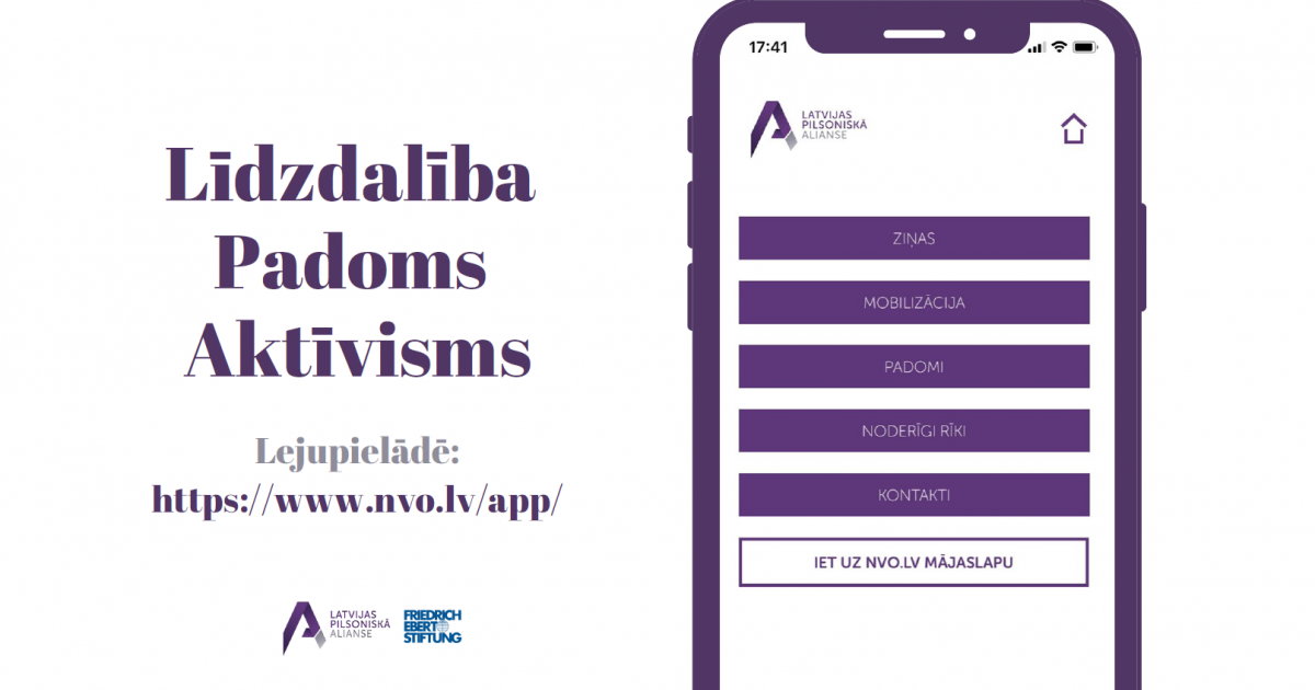 Latvijas Pilsoniskā alianse sadarbībā ar Fridriha Ēberta Fondu Baltijas valstīs, ir izstrādājusi mūsdienīgu platformu - aplikāciju - Līdzdalība. Padoms. Aktīvisms., kas sniedz pieeju noderīgiem pilsoniskā aktīvisma, sabiedrības līdzdalības un politiskā dialoga resursu datu bāzei, informē par aktualitātēm pilsoniskās sabiedrības jautājumos, tai skaitā likumdošanā, kā arī kalpo kā platforma, kurā var aicināt sabiedrības pārstāvjus uz solidāru rīcību un iesaistīties kādā pilsoniskā aktivitātē.