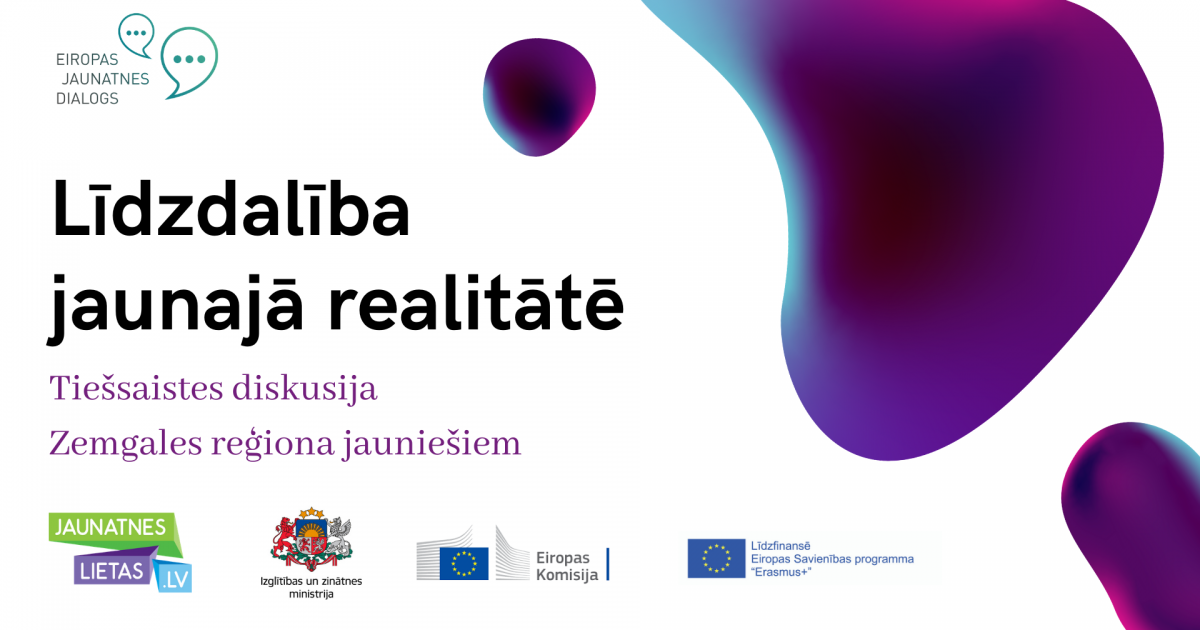 Izglītības un zinātnes ministrija aicina Zemgales reģiona jauniešus piedalīties tiešsaistes diskusijā “Līdzdalība jaunajā realitātē”, kas notiks 10. decembrī no plkst. 16:00 līdz 19:00 Zoom platformā.