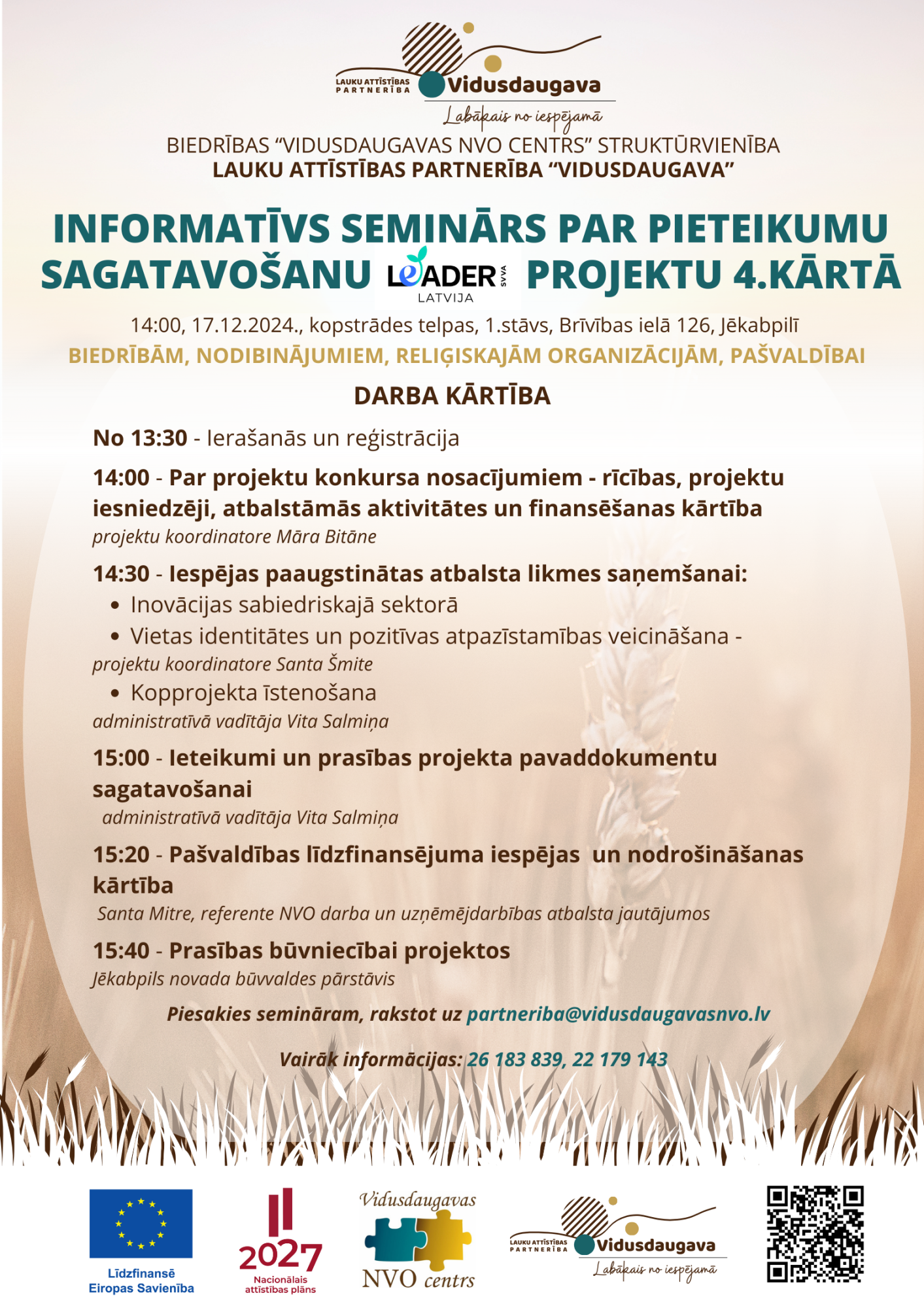 Ja pārstāvi biedrību, nodibinājumu, reliģisku organizāciju vai pašvaldību, nāc uz informatīvo semināru un uzzini par: