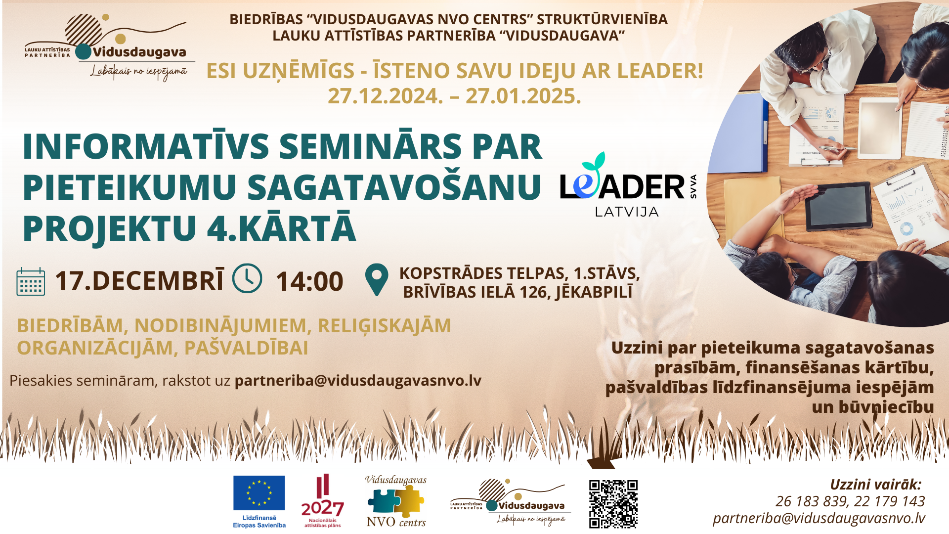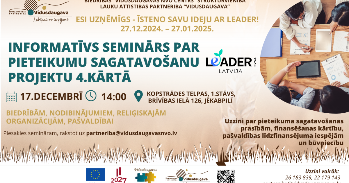 Aicinām uz informatīvu semināru 17. decembrī par LEADER projektu konkursa 4. kārtu