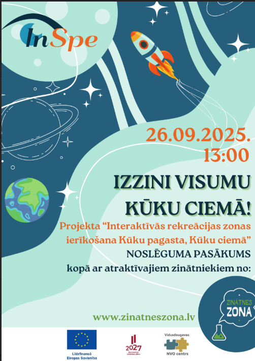 Biedrība “InSpe” informē, ka noslēgumam tuvojas projekts “Interaktīvās rekreācijas zonas ierīkošana Kūku pagasta, Kūku ciemā”, kura mērķis ir radīt mūsdienīgu, pievilcīgu un izglītojošu vidi Kūku ciema iedzīvotājiem un viesiem.