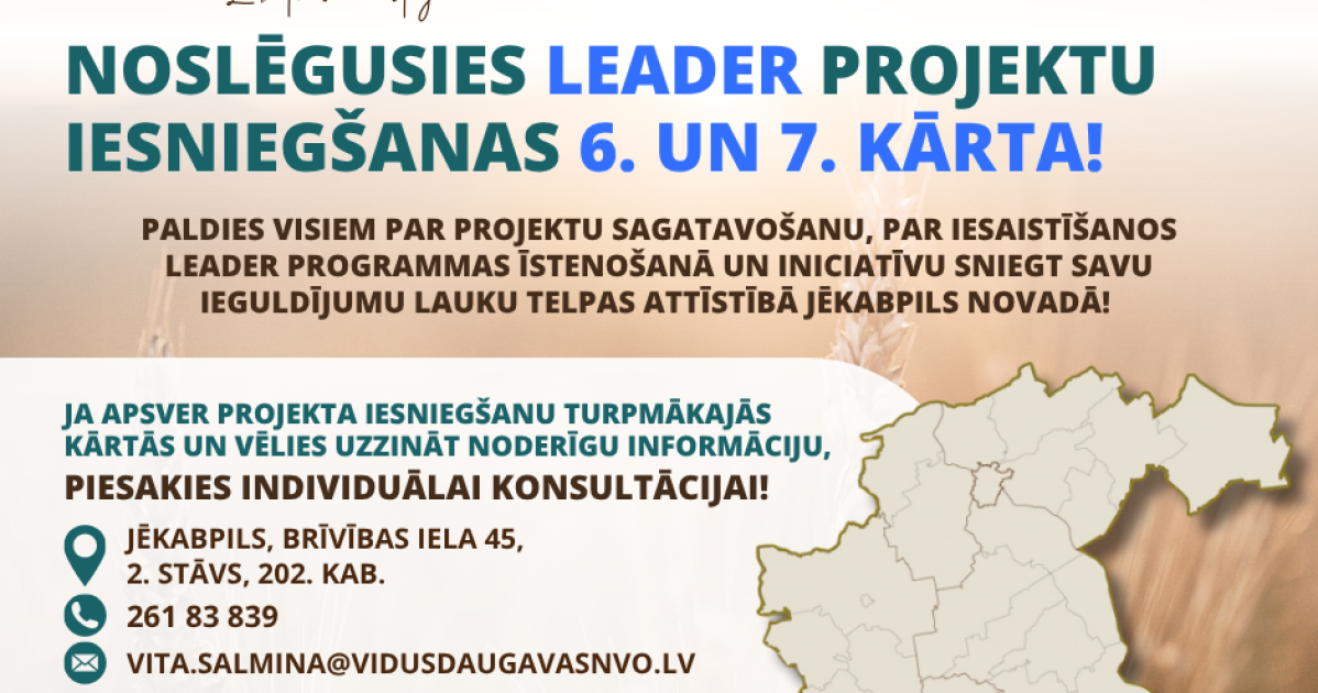 Sekojiet informācijai par LEADER programmas aktualitātēm Jēkabpils novadā mūsu biedrības mājas lapā: https://ej.uz/leaderjaunumi un sociālajos tīklos: