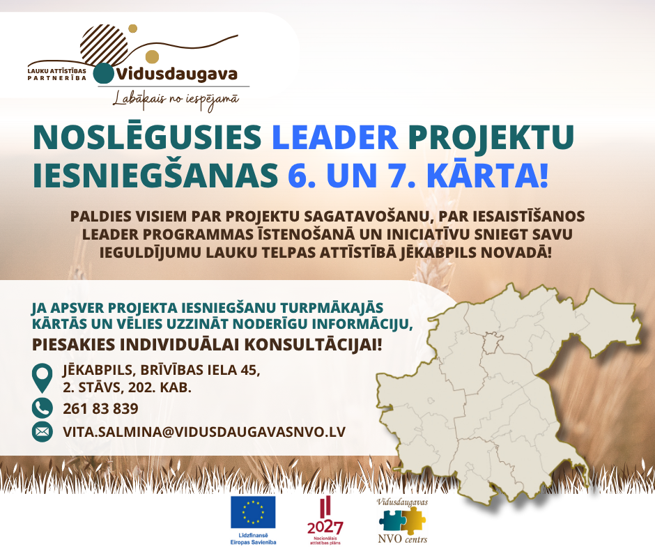 https://www.facebook.com/LAPVidusdaugava/. Pirms nākamo kārtu izsludināšanas aicināsim uz informatīvajiem semināriem!