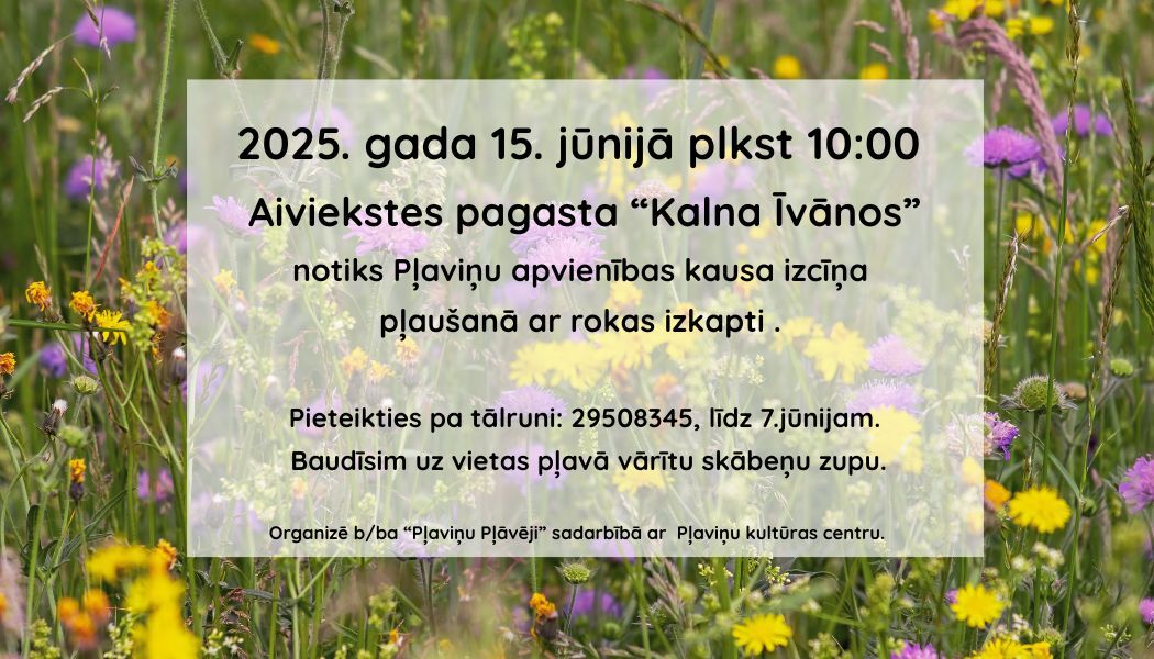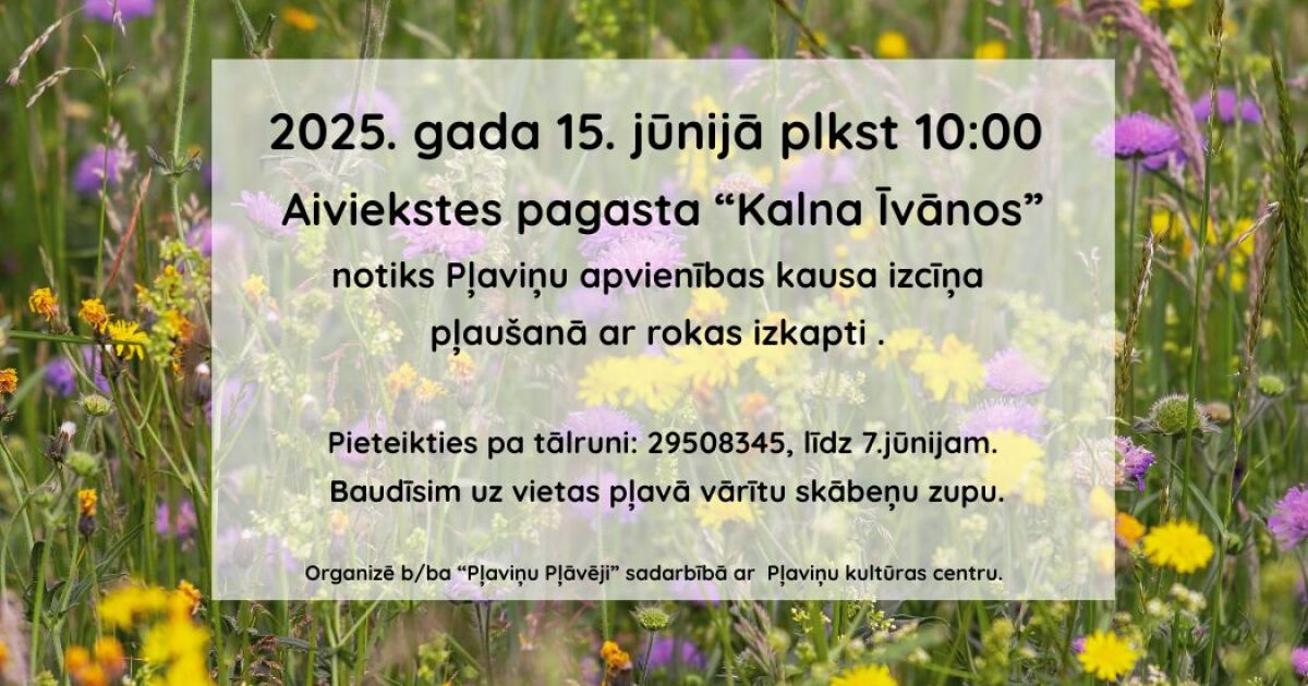 Vasara Latvijā ir īstais laiks, lai atgrieztos pie saknēm un izbaudītu mūsu tautas senās tradīcijas. Šī gada 15. jūnijā plkst. 10:00 biedrība “Pļaviņu Pļāvēji” aicina visus interesentus uz Aiviekstes pagasta “Kalna Īvāniem”, kur norisināsies Pļaviņu apvienības kausa izcīņa pļaušanā ar rokas izkapti!