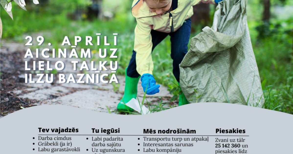 29. aprīlī, plkst 11.00 Ilzu baznīca, Rites pagastā, tiek organizēta Lielā talka.