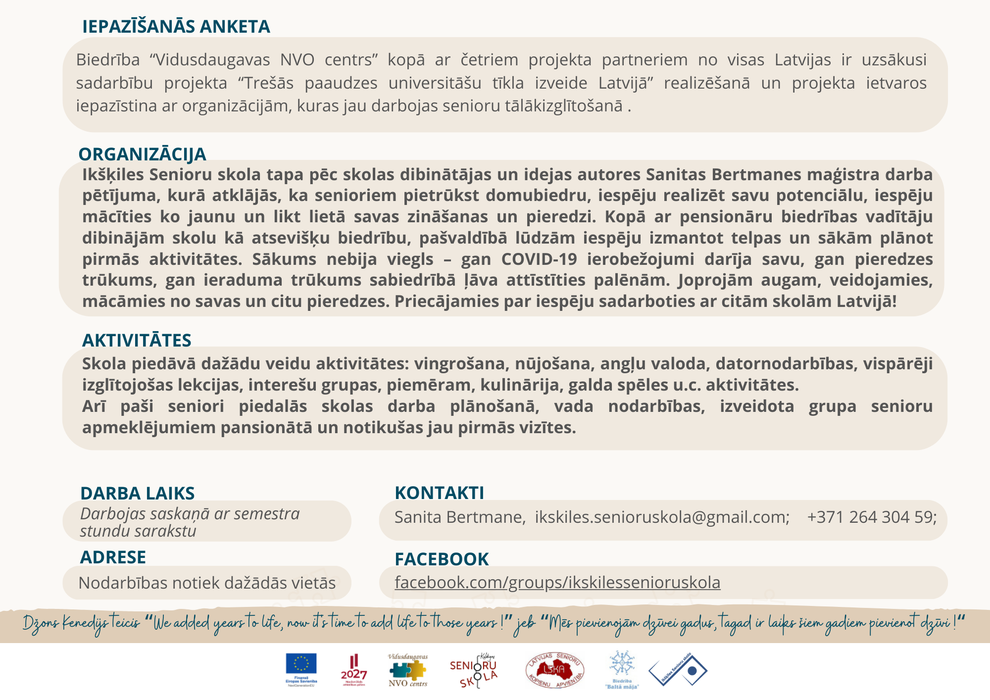Iepazīšanās anketa: "Ikšķiles senioru skola"