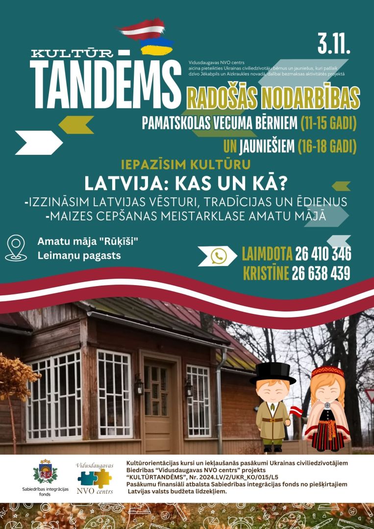 KULTŪRTANDĒMS: Aicinām Ukrainas jauniešus un bērnus pieteikties kultūrizglītojoša kursa nodarbībām, kas tiek organizētas projekta “Kultūrtandēms” ietvaros!