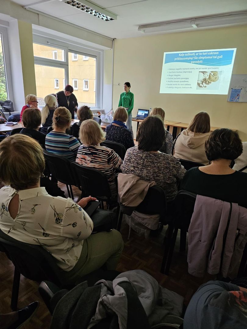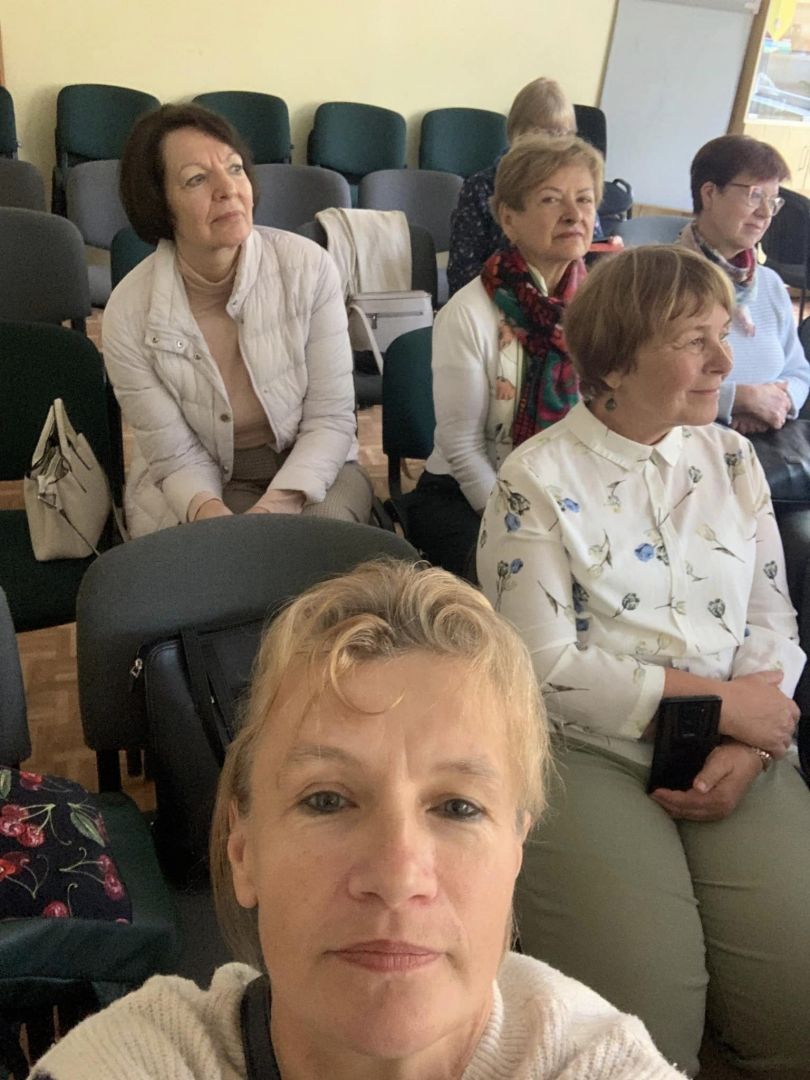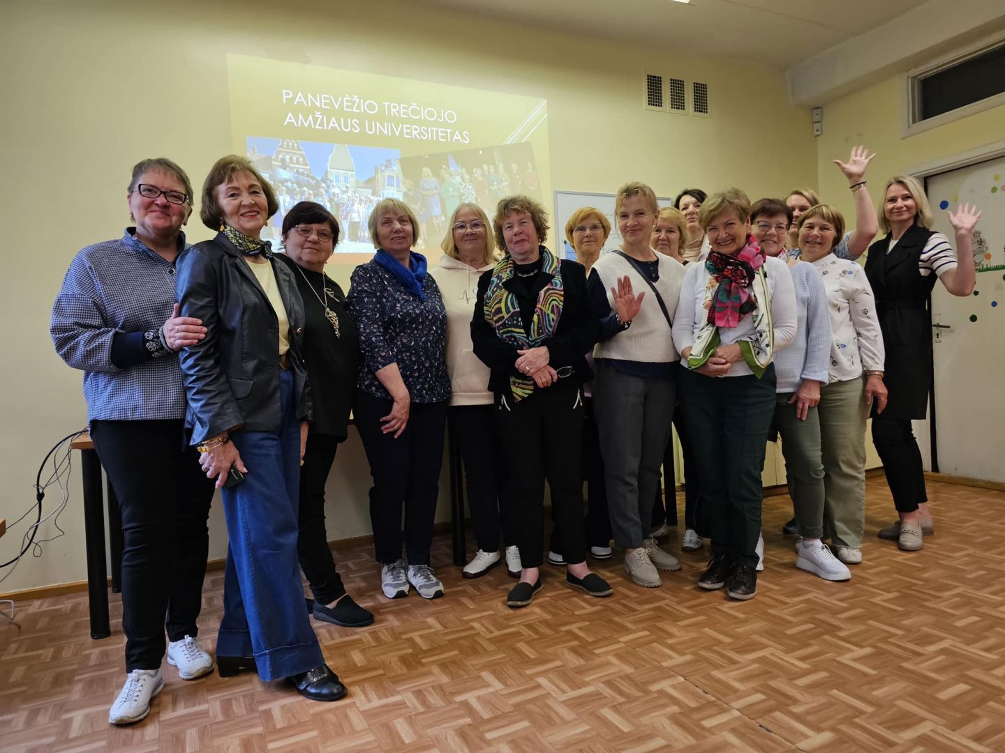 Panevézys Alfonso Lipniūno proģimnāzijas viens pirmā stāva ēkas spārns atvēlēts U3A darbam. Esot jau pašauri. Toties nav pašiem jārūpējas par siltuma, elektrības un citiem saimnieciskajiem tēriņiem, pat ne par telpu uzkopšanu-to visu nodrošina skola, tātad-pašvaldības atbalsts. Seniori te nāk bagātināt savas dzīves dienas. Stāstām par sava projekta kampaņu “Pievieno gadiem dzīvi!”-un lietuviešiem šis tiešām patīk. Jo viņi tieši tā jūtas!