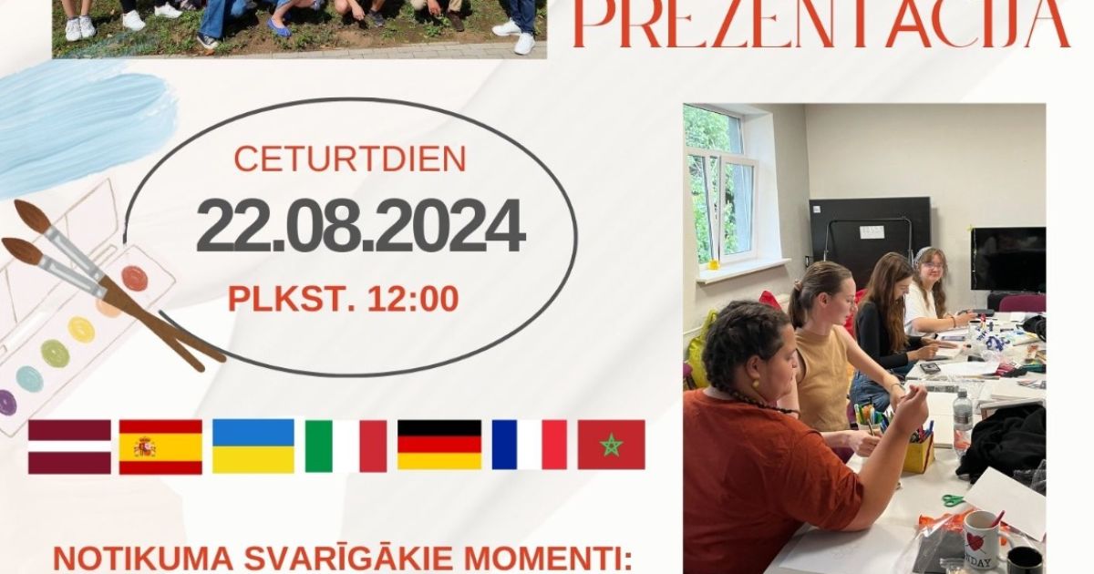 Šo ceturtdien 22. augustā Dienas centrs "Kopā būt" Eiropas jaunieši iepazīstinās ar to, kā pavadījuši laiku Latvijā, ko uzzinājuši, kā arī prezentēs, kādus labiekārtošanas darbus veikuši dienas centrā.