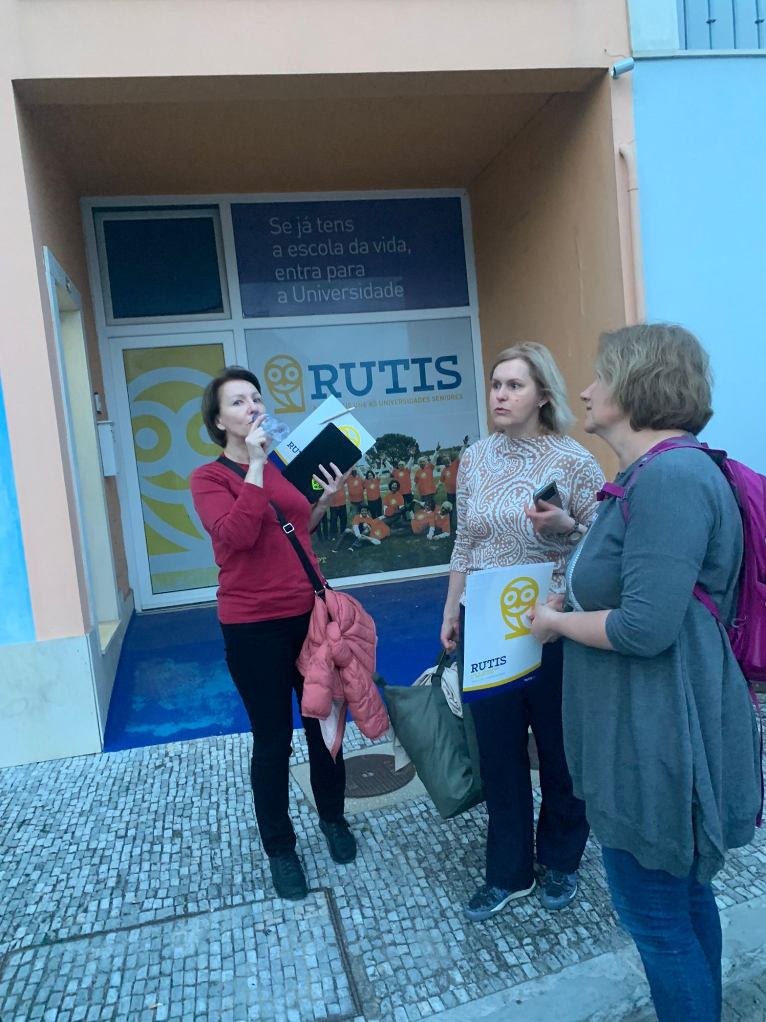 RUTIS vadītājs Luis Jacob un sabiedrisko attiecību vadītāja Dulce Mota mums pastāstīja par Portugāles U3A pirmssākumiem, kā viss tika veidots un kā ir šobrīd, cik daudz studentu un lektoru. Kas Portugālei ļoti raksturīgi – viņi ir savstarpēji solidāri un labprāt piedalās, arī kā brīvprātīgie pasniedzēji. Kā minēja Luis – ikvienam patiesībā ir kaut kas, ko viņš prot un var iemācīt otram un ikviens var atrast vienu stundu nedēļā, kuru ziedot kā pasniedzējs brīvprātīgam darbam.