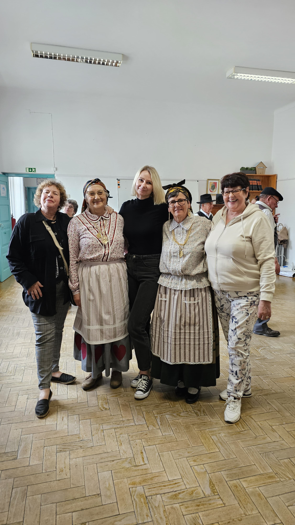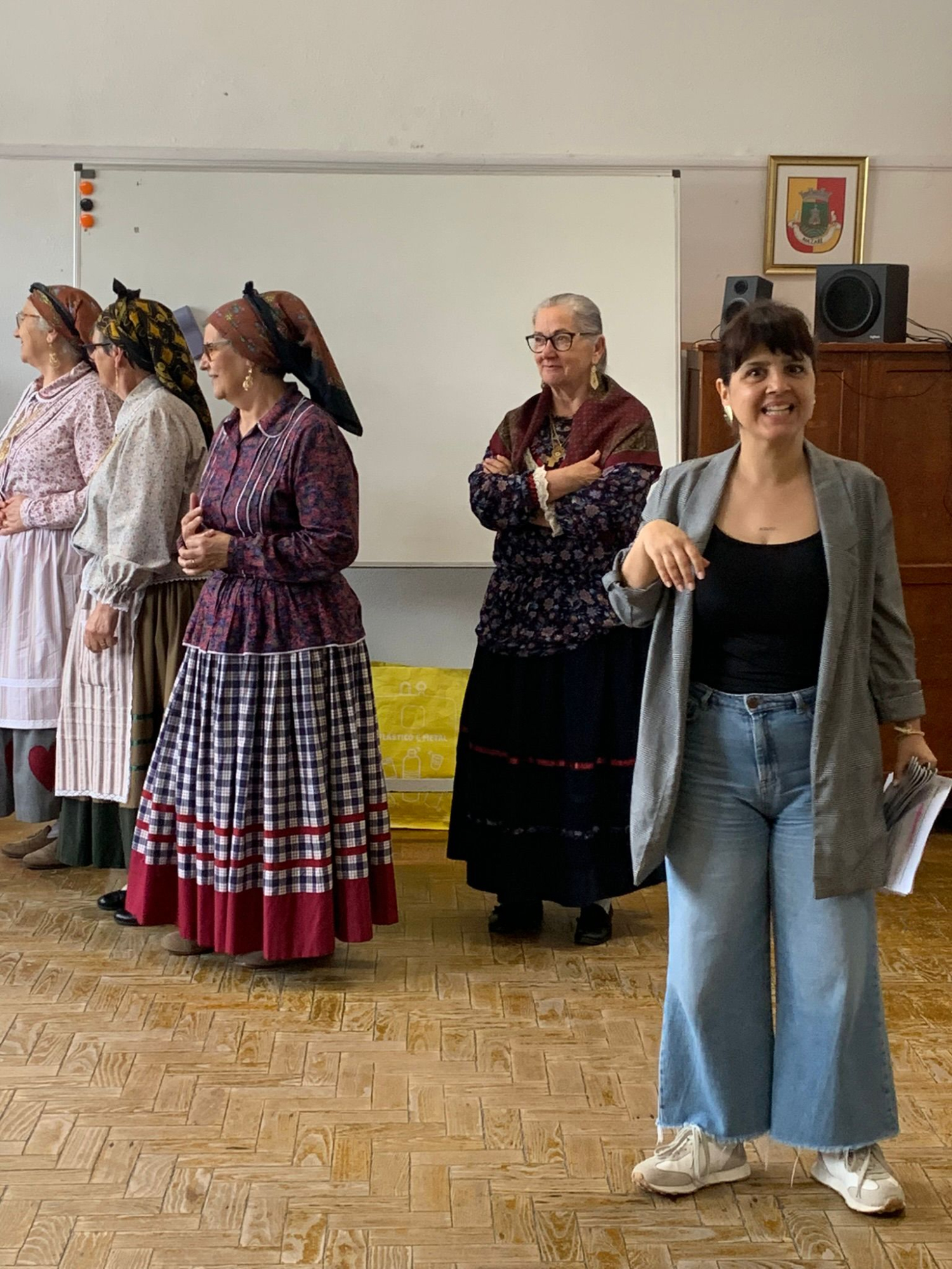 Pēcpusdienā tiekamies ar pirmajiem Portugāles Trešās paaudzes jeb Senioru universitātes apmeklētājiem – nacionālo deju dejotājiem atvērtā tipa nodarbībā. Tie pārsvarā ir seniori, kuri nekad nav dejojuši, bet tagad ik nedēļu pulcējas, lai to darītu. Redzams, ka viņu mērķis nav nostiepti purngali un ideāls deju zīmējums, bet gan lustīga kopā būšana un izkustēšanās. Pēc trim – četrām dejām tiekam iesaistīti arī mēs un vadošā projekta eksperte Tatjana tiek īpaši uzlielīta: ko seniori mācījušies trīs mēnešus, to Tatjana diezgan pieklājīgā līmenī apguvusi 15 minūtēs! Runājoties pēc priekšnesumiem, pārliecināmies, ka seniori