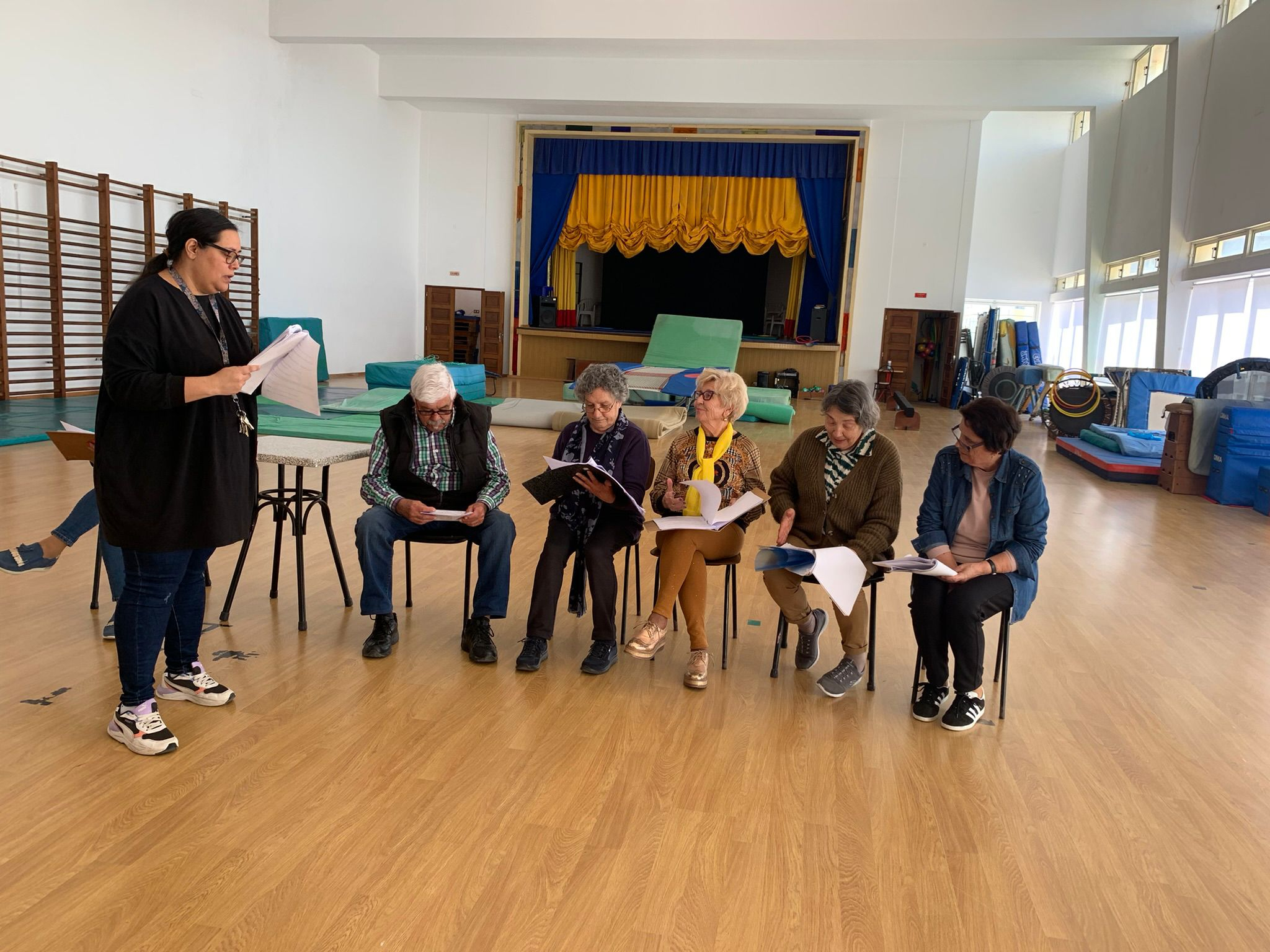 Tālāk – teātra nodarbība. Seniori gatavojas ikgadējam festivālam, kas notiks šeit, Peniche. Valodu nesaprotam, bet žesti un intonācijas runā pašas par sevi. Palielajā skolas zālē skaļi skan aktieru – pašdarbnieku emocijas, lasītie teksti, no kuriem iemācamies “Ole” (sveiki).